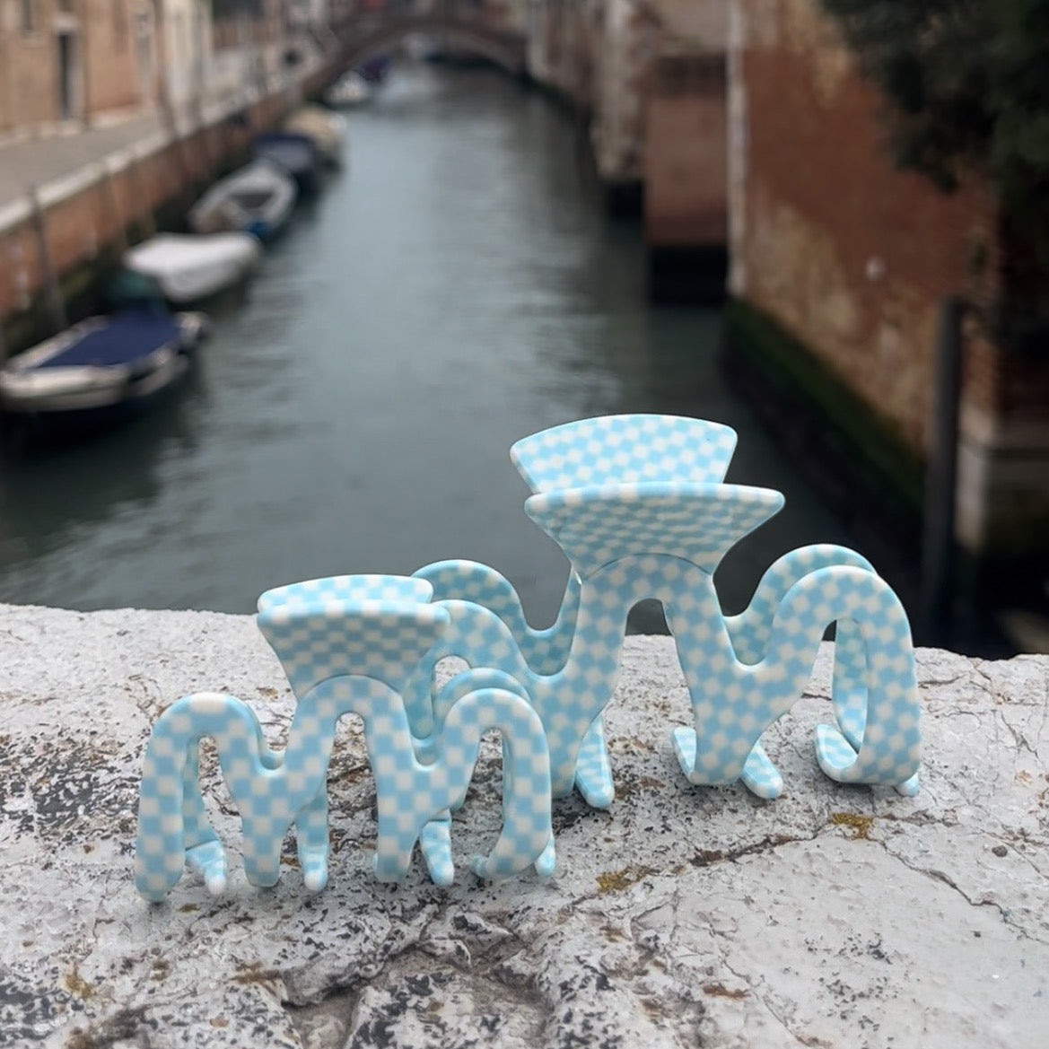Nos barrettes sont fabriquées en acétate de cellulose, un bioplastique végétal certifié ISCC PLUS. Comparé au plastique issu du pétrole, l'acétate est plus durable et biodégradable. Les composants en acétate et en métal ont été testés et déclarés exempts de substances nocives comme le plomb, le cadmium et les phtalates.