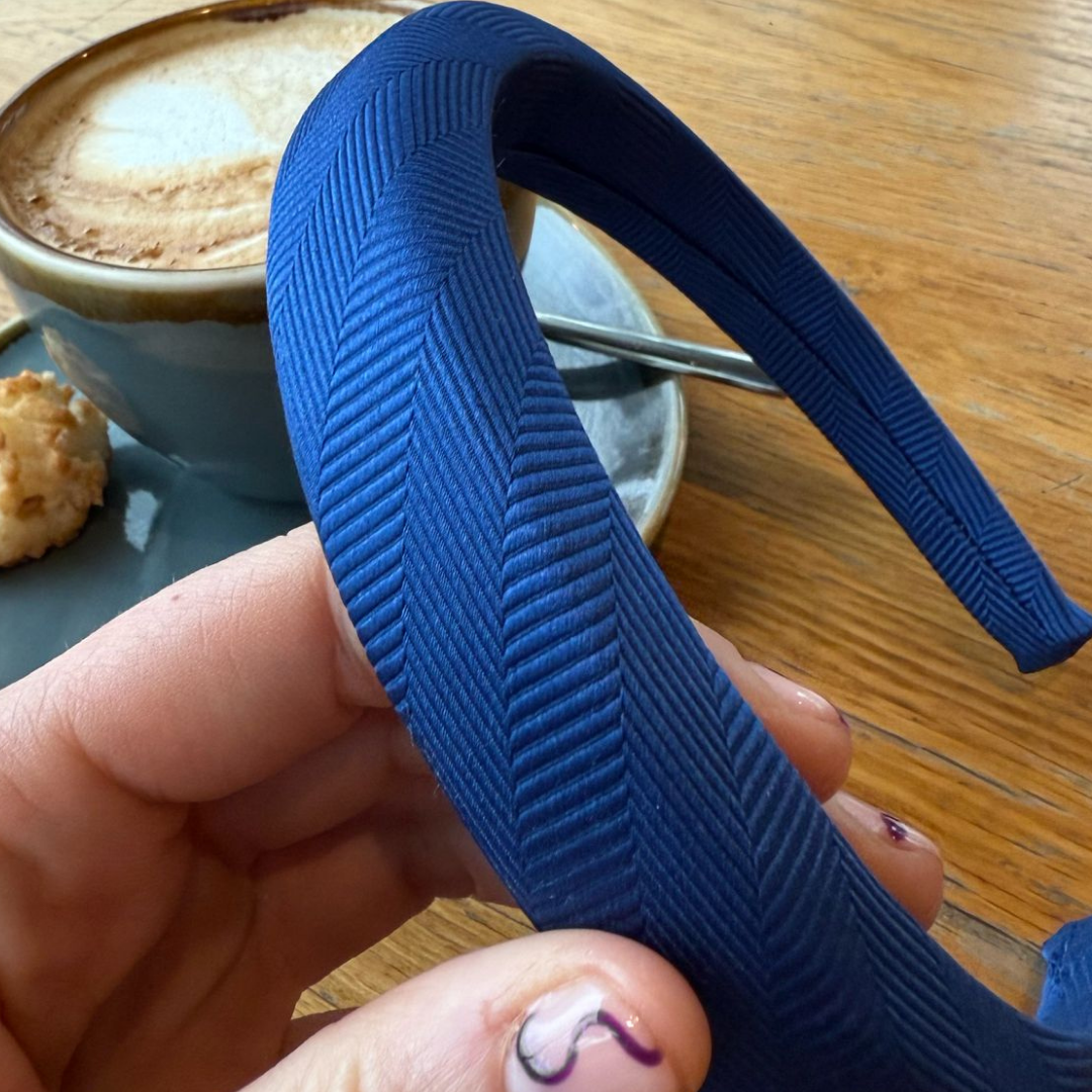 Petite anecdote : ce serre-tête est vraiment unique, car il n'existe qu'en un seul exemplaire. Fabriqué à partir d'une cravate et recyclé.