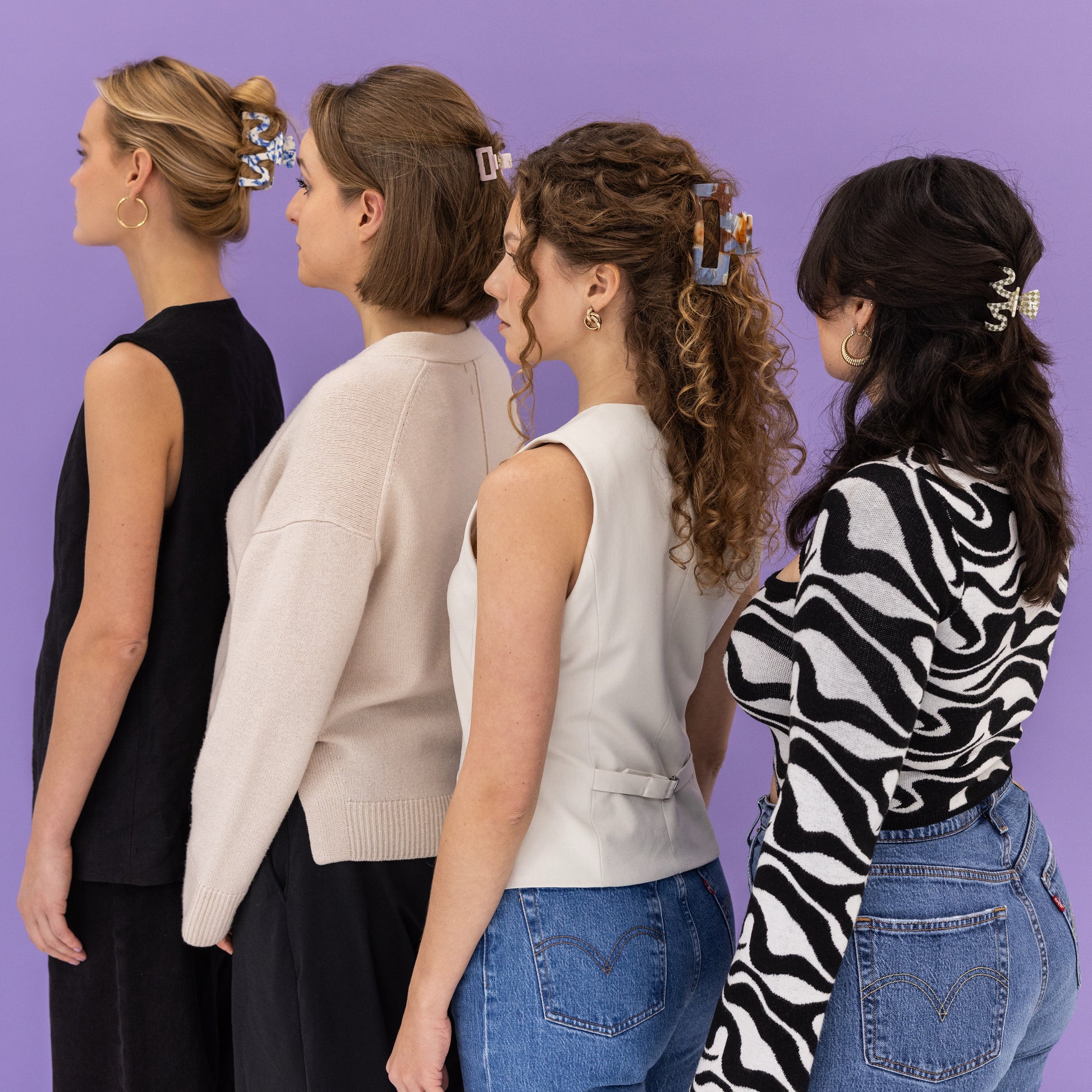 Onze haarclips zijn gemaakt van celluloseacetaat, een plantaardig bio-plastic gecertificeerd door ISCC PLUS. In vergelijking met op aardolie gebaseerd plastic is acetaat duurzamer en biologisch afbreekbaar. De acetaat- en metalen onderdelen zijn getest en vrij van schadelijke stoffen zoals lood, cadmium en ftalaten.