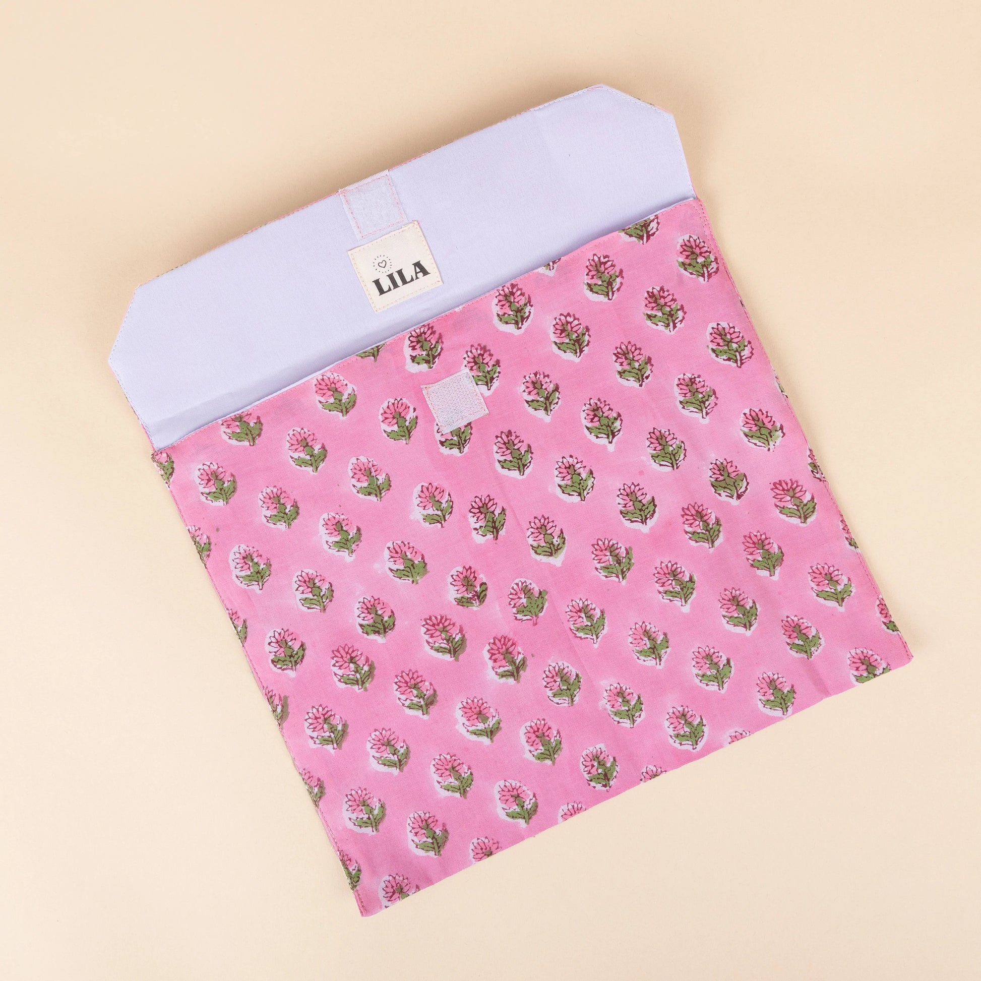 De vrolijke prints op onze tassen en toilettassen worden met de hand gedrukt volgens een eeuwenoude techniek: block printing. Met houten stempels worden de patronen één voor één op de stof gezet.